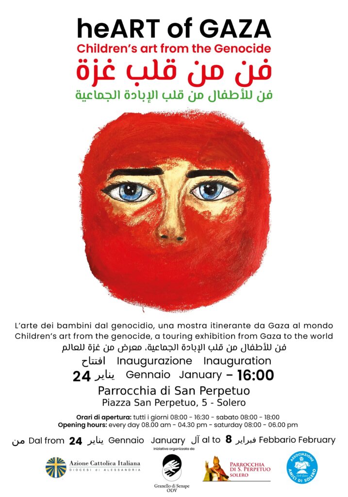 Dal 24 gennaio al 18 febbraio la parrocchia di San Perpetuo a Solero ospita una mostra itinerante che raccoglie i disegni dei bambini di Gaza: uno sguardo profondo e toccante sulla guerra raccontato attraverso l’arte.